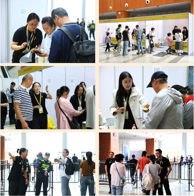 黨員突擊隊(duì)成員們身著統(tǒng)一制服,精神飽滿地投入各項(xiàng)支援工作。在現(xiàn)場(chǎng)登記處,他們熱心引導(dǎo)觀眾掃碼登記入場(chǎng),無論是手機(jī)操作不熟悉,還是掃碼過程中出現(xiàn)的技術(shù)問題,他們都能細(xì)心解答,讓觀眾感受到省心和貼心;在入場(chǎng)核驗(yàn)處,他們嚴(yán)格執(zhí)行入場(chǎng)規(guī)定,維護(hù)展會(huì)秩序,確保展會(huì)安全有序進(jìn)行;在服務(wù)指引時(shí),他們?yōu)閰⒄股毯陀^眾提供熱情周到的服務(wù),耐心解答疑問,主動(dòng)提供幫助;在現(xiàn)場(chǎng)調(diào)研時(shí),他們認(rèn)真收集反饋意見,為今后的展會(huì)工作提供有力支持;館內(nèi)黨員先鋒示范區(qū)還同時(shí)提供信息咨詢、失物招領(lǐng)、應(yīng)急充電服務(wù)以及應(yīng)急藥箱和免費(fèi)飲用水等物資,多措并舉為前來參觀的群眾營(yíng)造良好的觀展體驗(yàn)。