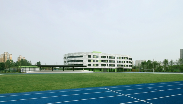 ——項目設計之初秉承給學生提供最大限度活動空間的理念,預留了較多的運動空間。設有4處室外籃球場,1個天然草坪足球場,以及6道300米塑膠跑道,并且是河西地區(qū)第一家采用藍色塑膠跑道的學校!