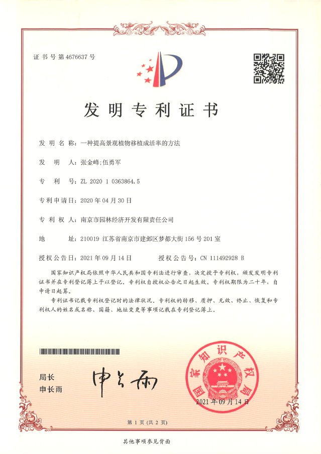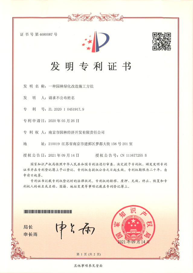 喜訊丨園林公司喜獲兩項(xiàng)國(guó)家發(fā)明專利