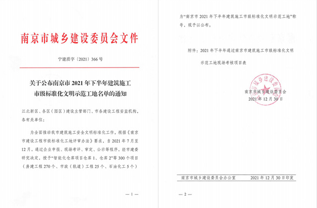 近日,河西集團新城公司河西金融中心項目喜獲市建委工程質(zhì)量安全監(jiān)管處發(fā)布的2021年下半年“市標準化文明示范工地”稱號。