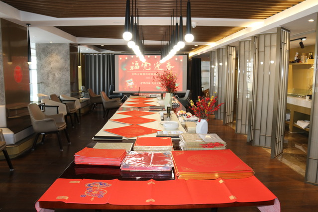 寫春聯(lián)、貼春聯(lián)是中國(guó)春節(jié)的傳統(tǒng)習(xí)俗,也是辭舊迎新過(guò)大年的一種象征。為弘揚(yáng)中華書法藝術(shù)與傳統(tǒng)節(jié)日文化,給市民、住店客人送上新春祝福。近日,河西集團(tuán)青奧城公司金帆萬(wàn)源酒店開展“?;⒂骸?022新年納福公益筆會(huì),來(lái)自南京的書畫名家應(yīng)邀出席。