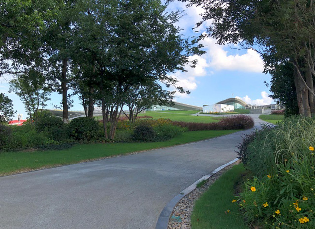 綠博園東入口項(xiàng)目在綠植選用上注重運(yùn)用彩葉樹(shù)種,中山紅、佛甲草、南天竹等彩葉灌木,襯托在綠茵茵的草坪上,增強(qiáng)了觀賞效果。大面積花崗巖鋪裝,弧形路牙石花壇、多色植物搭配,形成空間開(kāi)闊、環(huán)境優(yōu)美公園出入口景觀。