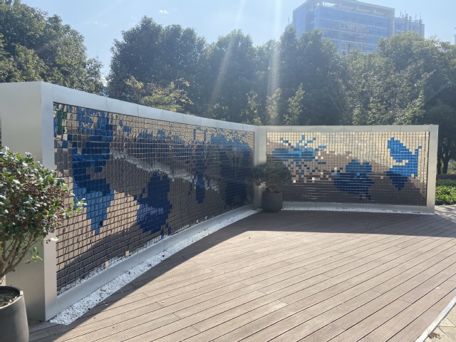 該項(xiàng)目位于南京青奧村,施工面積3000平方米,項(xiàng)目書(shū)和自然(昆蟲(chóng))設(shè)計(jì)理念建成了一個(gè)全方位體驗(yàn)的多感官?gòu)V場(chǎng):在視覺(jué)上,活字印刷墻隨光影的變化能夠顯現(xiàn)出千字文的內(nèi)容;在聽(tīng)覺(jué)上,風(fēng)動(dòng)墻昆蟲(chóng)互動(dòng)裝置鋁會(huì)發(fā)出特有的聲音;在嗅覺(jué)上,垂直綠化墻體上的綠植在開(kāi)花時(shí)散發(fā)出陣陣花香;在觸覺(jué)上,文字互動(dòng)裝置撥動(dòng)雙色滾珠時(shí),可組成不同文字或圖案。