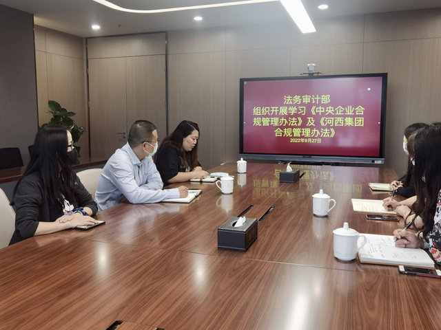 為更好地履行合規(guī)管理職能、提升集團(tuán)整體合規(guī)管理水平,近日,河西集團(tuán)法務(wù)審計(jì)部全體人員共同學(xué)習(xí)《中央企業(yè)合規(guī)管理辦法》(以下簡(jiǎn)稱《辦法》,該《辦法》于2022年8月23日公布,并于2022年10月1日起施行)。