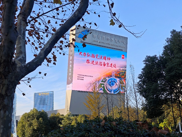憲法是國家的根本大法,是治國安邦的總章程。今年124日是第十個國家憲法日,124日所在的周是第六個憲法宣傳周。為深入學習宣傳貫徹習近平法治思想,著力營造學習宣傳憲法的濃厚氛圍,弘揚憲法精神,維護憲法權威,集團充分借力戶外大屏媒介載體進行普法宣傳,會展、公園、酒店等板塊根據(jù)集團部署聯(lián)運同步點亮大力弘揚憲法精神、推進法治南京建設宣傳標語,利用各類公共場所電子顯示屏滾動播放,使憲法宣傳走進千家萬戶。